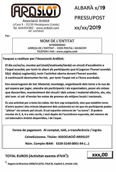 ardslot@ardslot.com o per WhatsApp al 644 25 43 82 (Eduard).